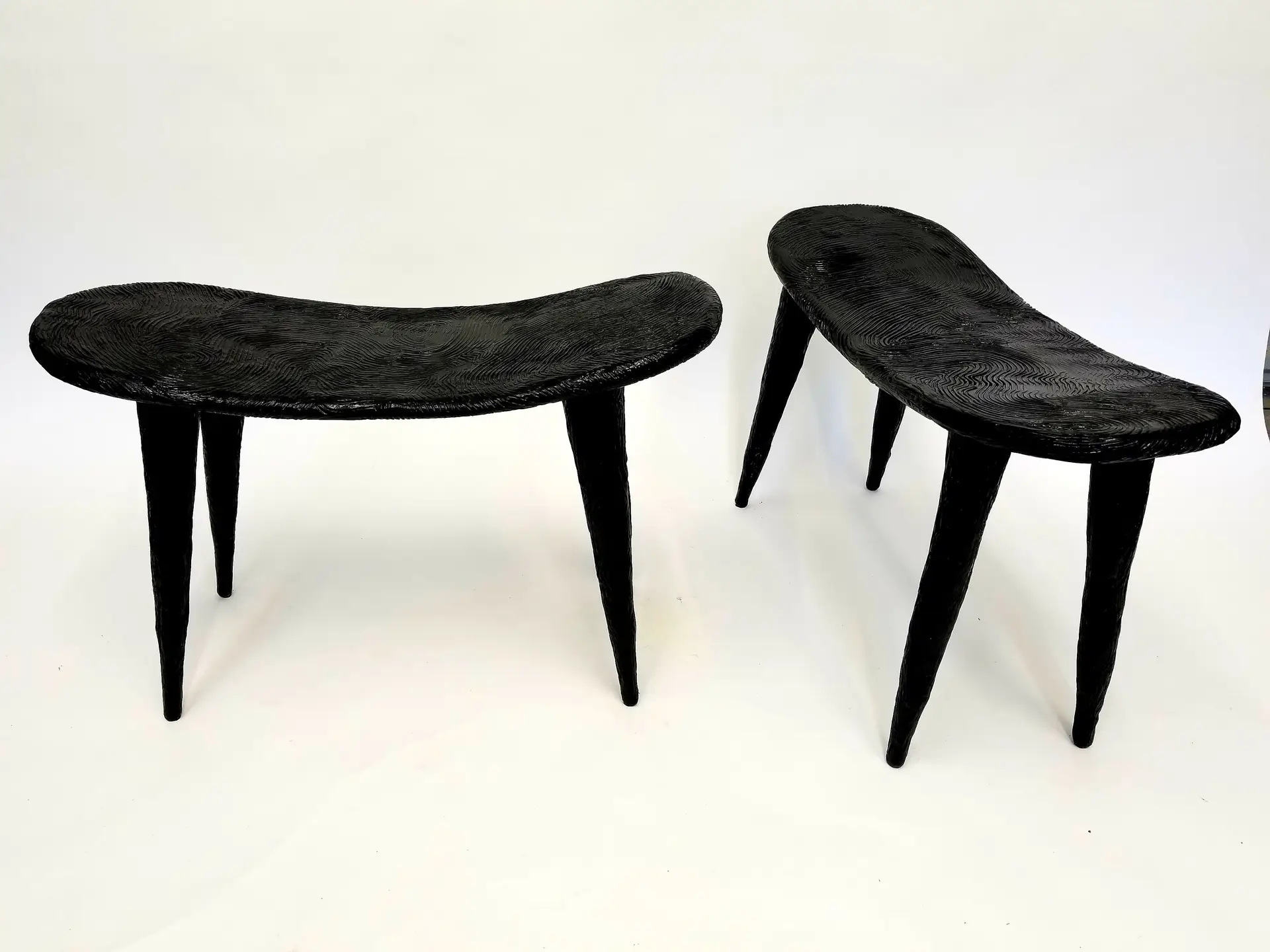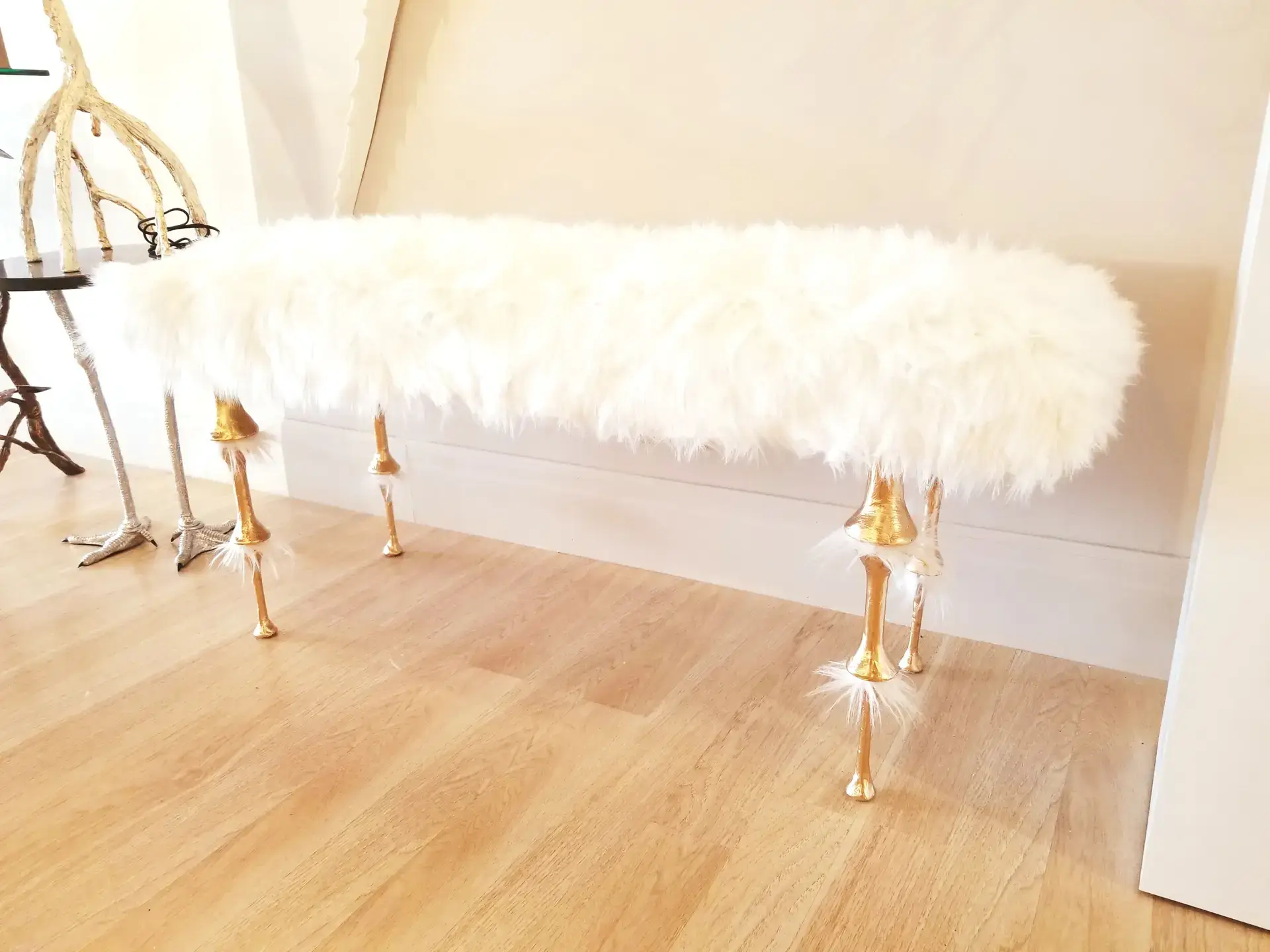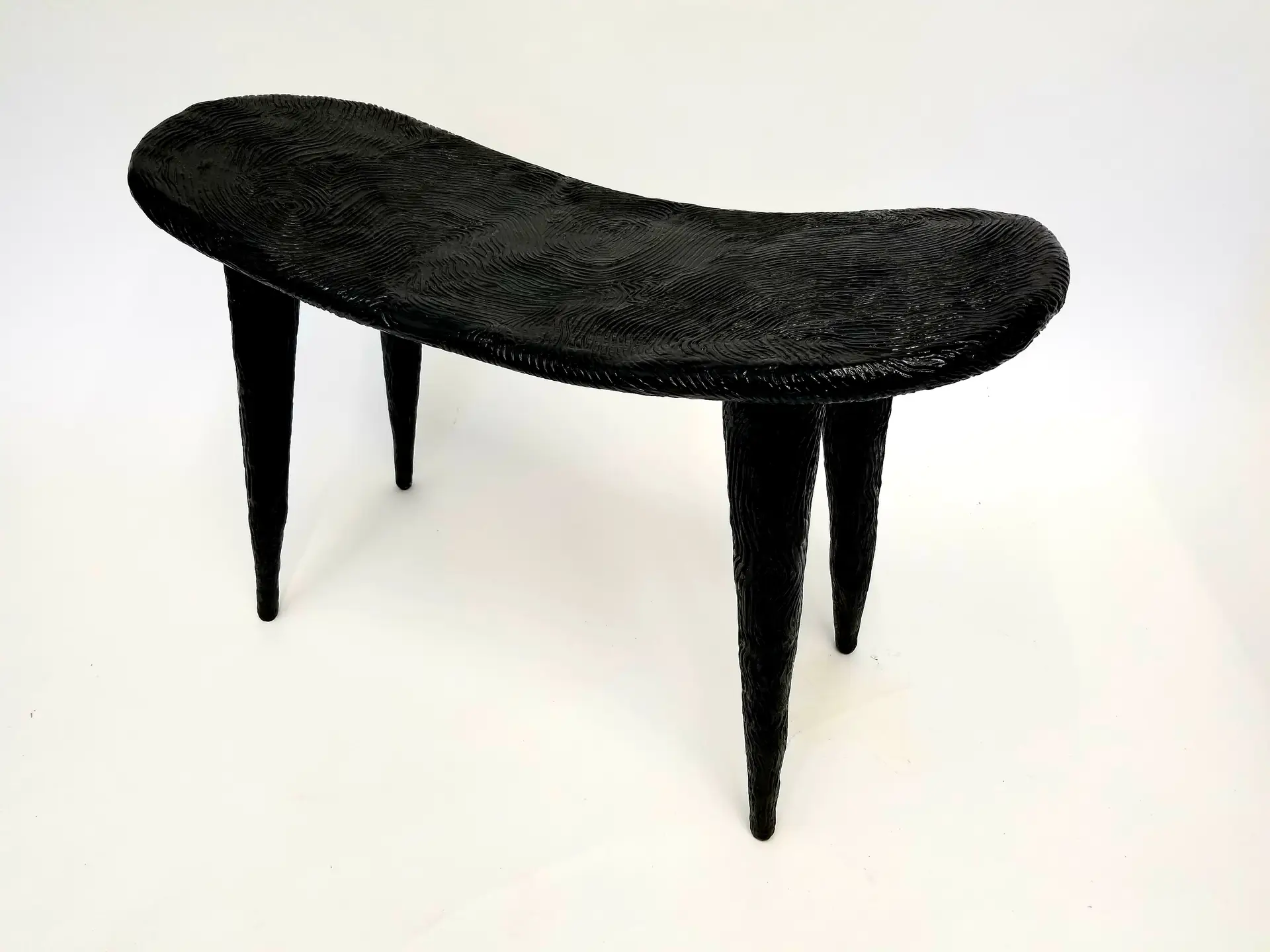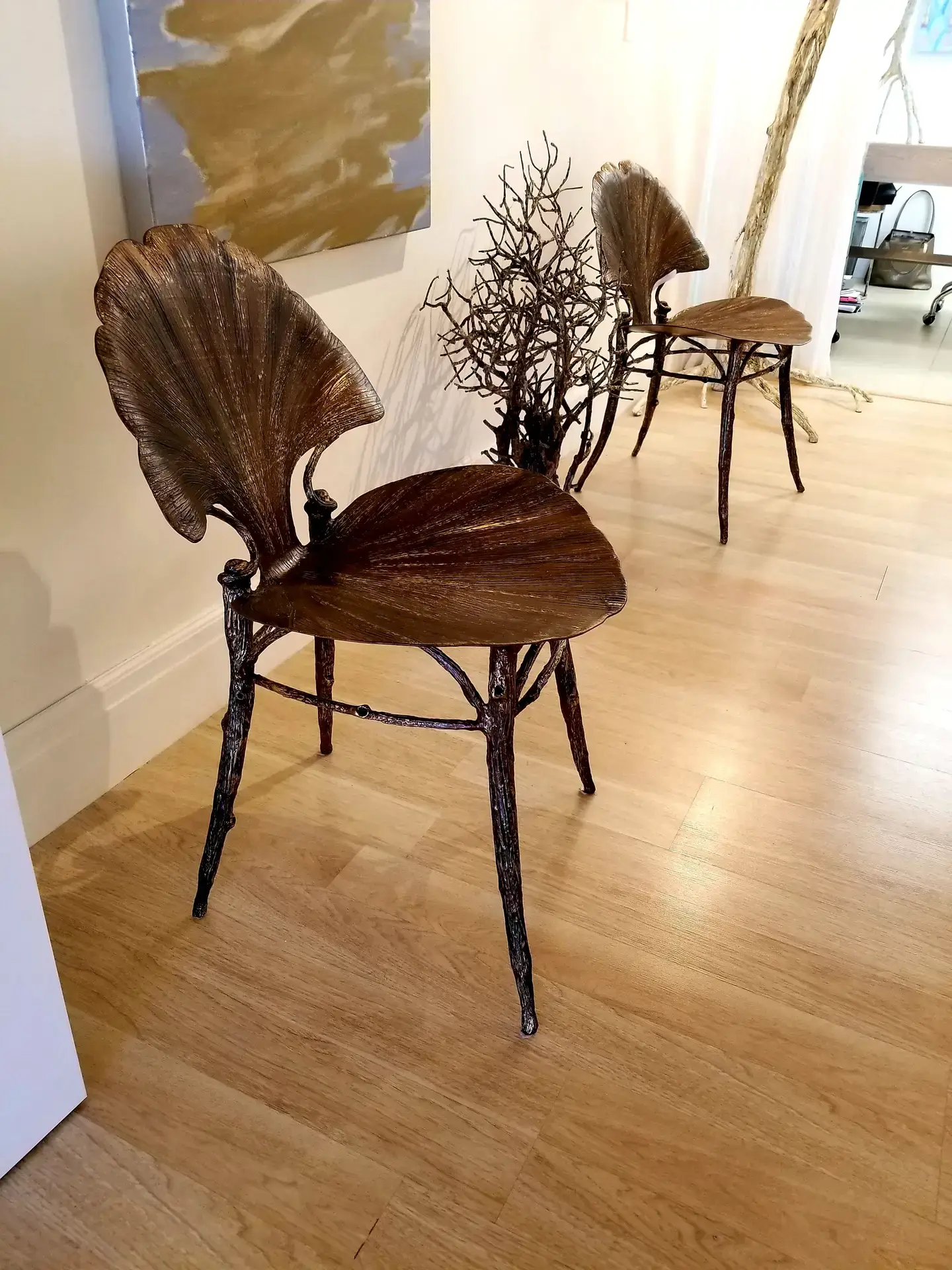 My sculptured Chairs & Benches are mostly fabricated and welded out of steel with layers of composite epoxies.  They are built for comfort & strength and designed with stylish pleasure. Any color is possible. Chairs can be shipped worldwide, as recently featured at Harrods in London and Maison 1865 in Dubai for example.