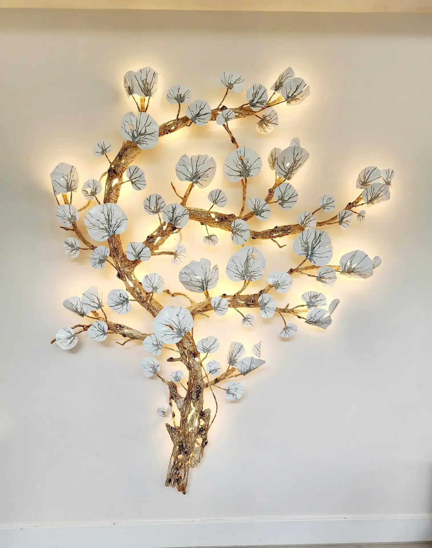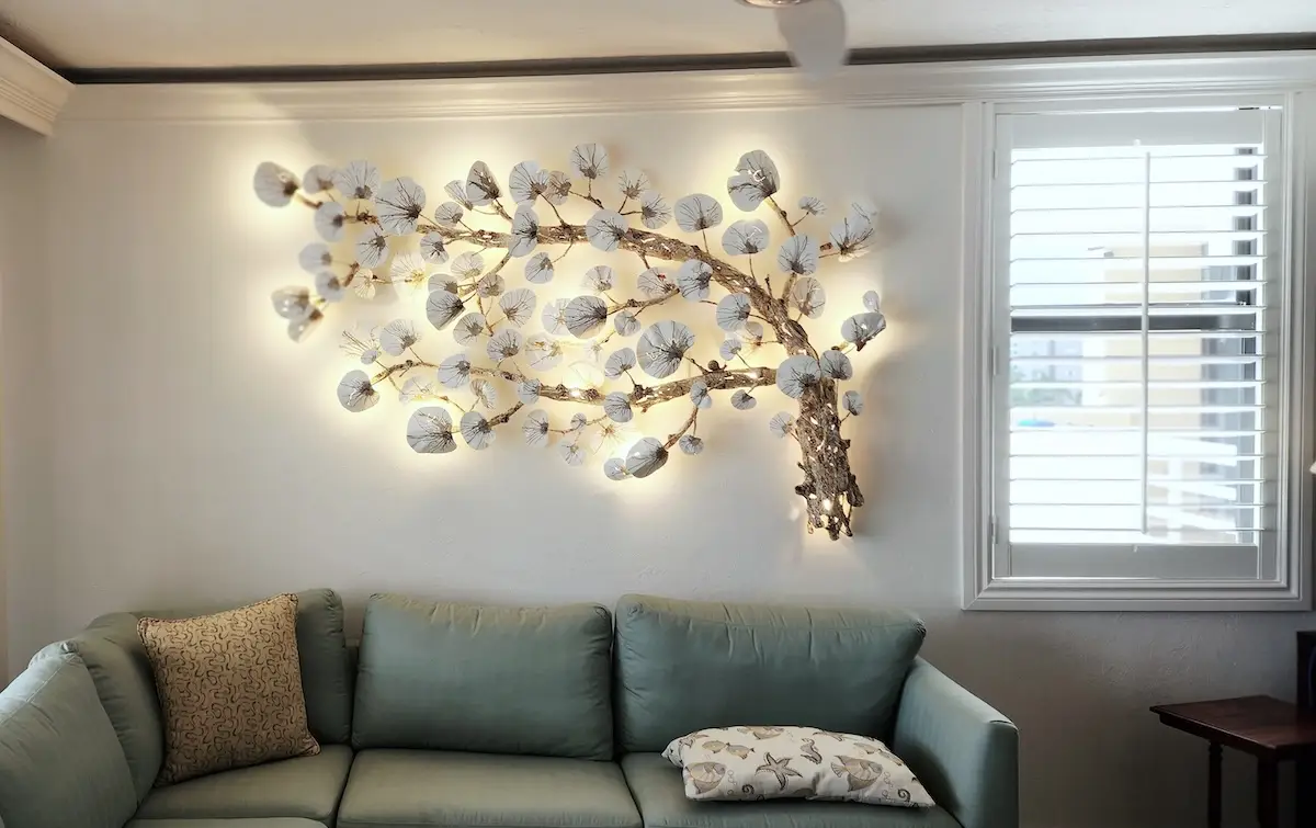 Each wall sconce is handmade from durable steel and epoxies, and every piece arrives ready with LED bulbs. Completely customizable to fit your space, Koehler’s sconces are available in designs inspired by driftwood, coral, leaves, and more. All sconces can be installed vertically or horizontally and include dimmable LED lighting to set the perfect ambiance. Choose from a range of colors to suit your vision. Let’s connect to explore your ideas and create a stunning, custom piece that will transform your space.
