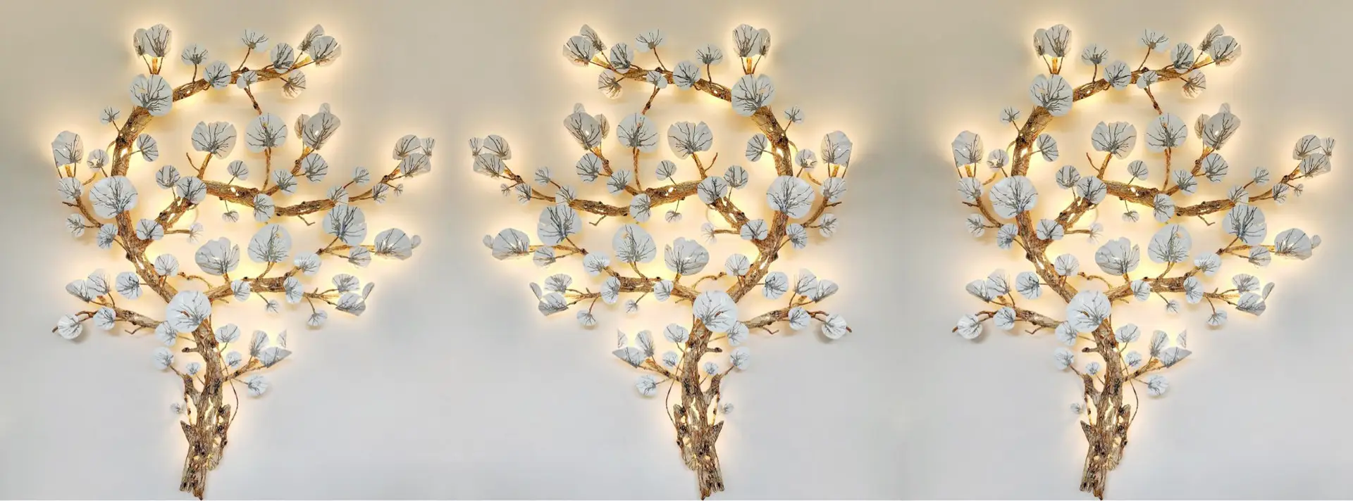 Golden Leaf Sconces with LED Lights by Ed Koehler Designs